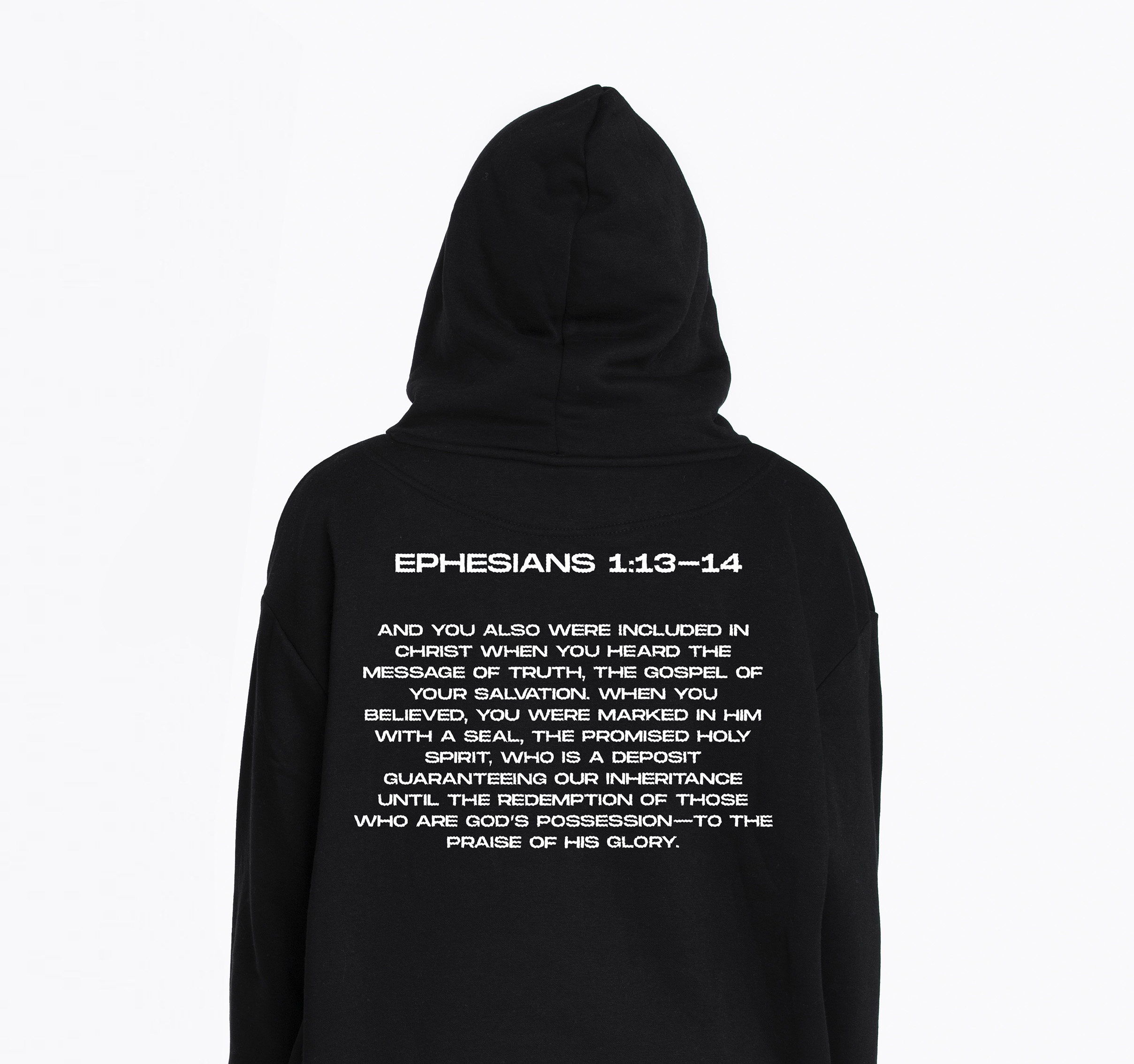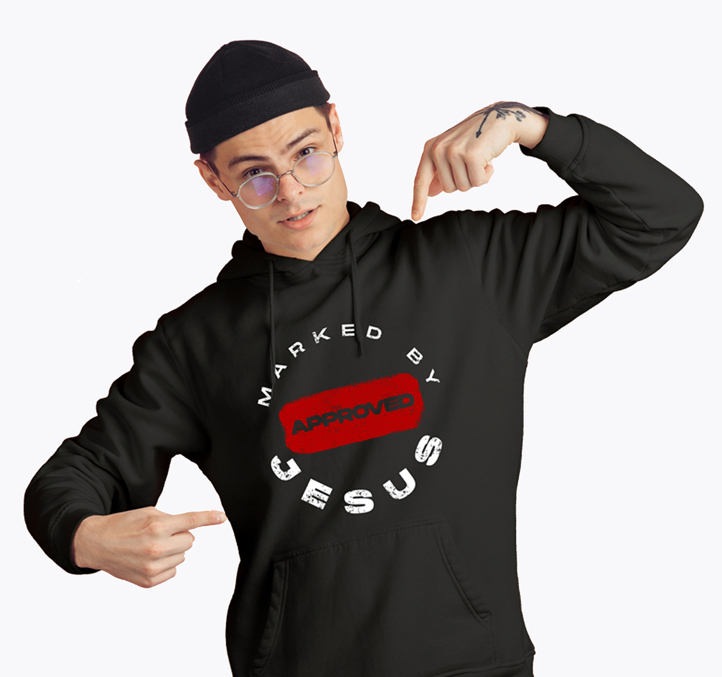 HOODIE WITH NO ZIP,CUFFS, AND WAISTBAND – double-sided – MarkedByJesus Full Chest & scripture at the back